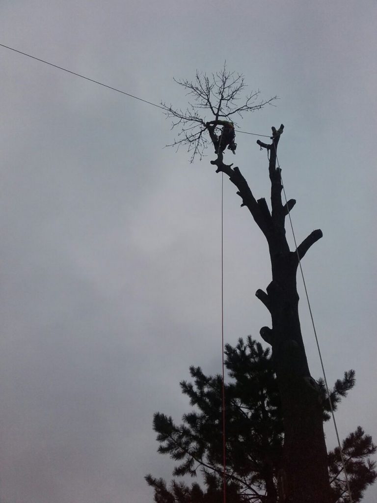 Sichere Baumfällung mittels Seilklettertechnik (SKT) und gesichertes Abtragen von Ästen und Stammteilen