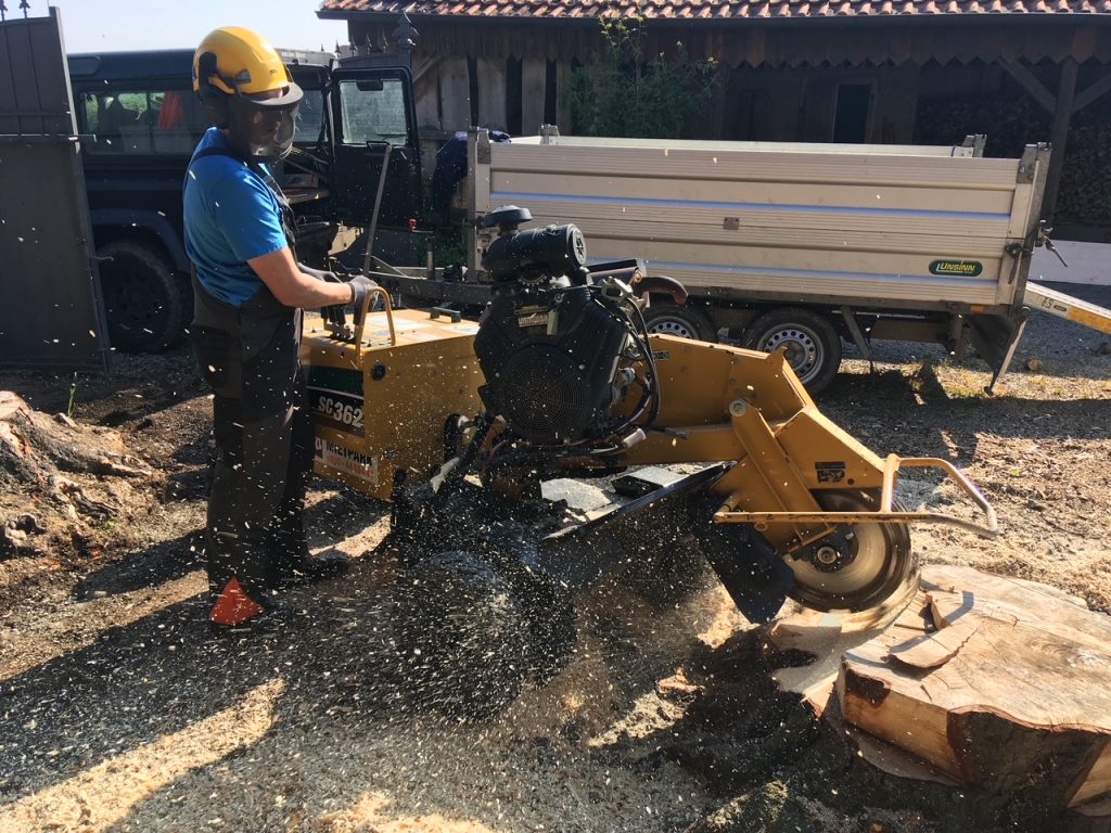 Wurzelstockfräsen (Baumstumpfentfernung), somit besteht die Möglichkeit einer Ersatzpflanzung oder das einebnen der Fläche.